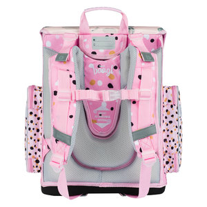 Vďaka posuvnému chrbtovému systému ERGO ADJUSTABLE SYSTEM je možné aktovku ľahko nastaviť do optimálnej polohy vzhľadom k výške dieťaťa. Ergonomicky tvarovaný chrbát a plne nastaviteľné ramenné, prsné a bočné kompresné popruhy umožňujú ideálne prispôsobenie aktovky postave.