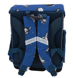 - Batoh je modrý motívom vesmíru.